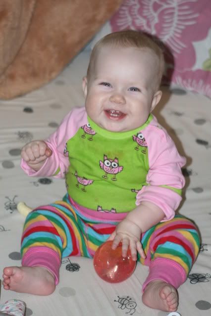 Simon ålade vid 1 år och 1 dag. Så Ellen var tidigare med det, men mycket långsammare med att tex. klappa händerna (vilket hon inte gör än, Simon klappade händerna vid 8 månader.)