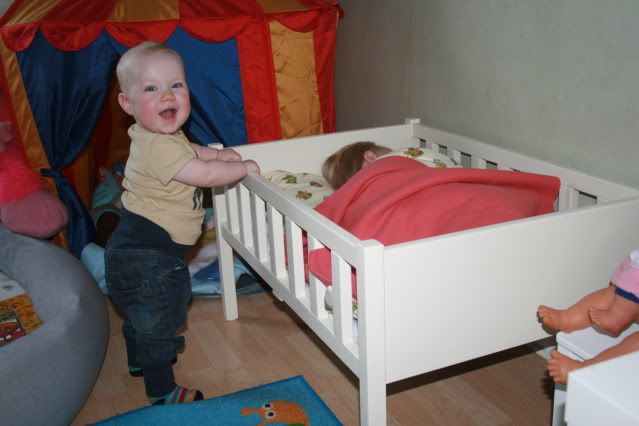 Raymond la ner Simon i nya docksängen när han somnat i hans famn, görkul tyckte Ellen.